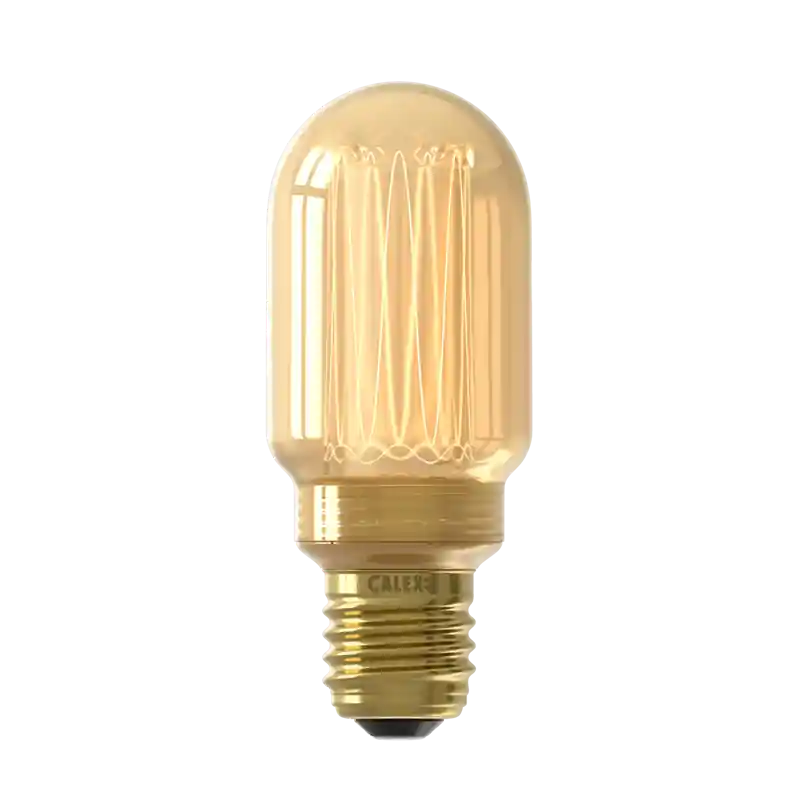 Bombilla LED tubular de fibra de vidrio Calex T45 Gold SMD 220-240 V 3,5 W 120 lm 1800 K E27 regulable mediante regulador LED.