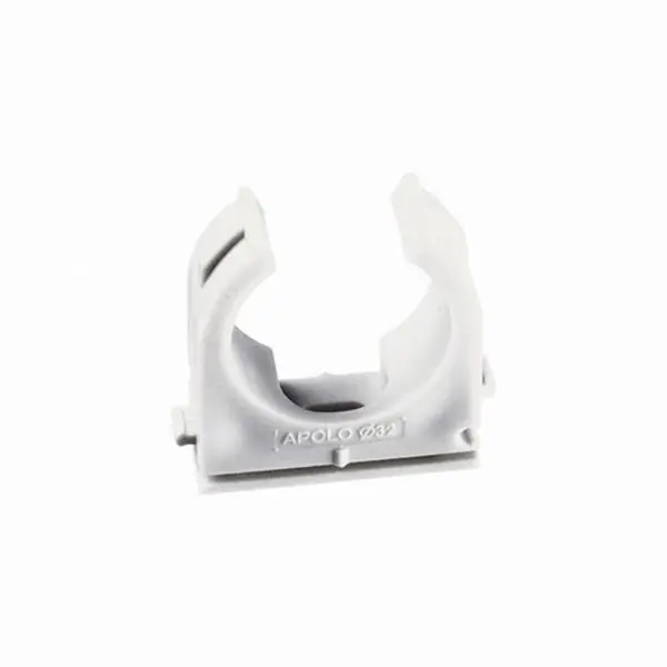 Abrazadera APOLO abierta multiclip de nylon con unión lateral para montaje en serie. Se puede fijar a perfil E2000PB, E2000PG y 1000PVC, además de, con taco de golpe NP4x25, con taco FX Ø6 y tornillo Ø4,5×35/45. Agujero pasante de 4,5 mm.
