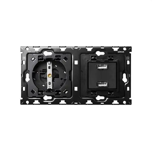 Información sobre Kit back para 2 elementos con 1 base de enchufe schuko y 1 cargador 2xUSB 2.1A Simon 100
