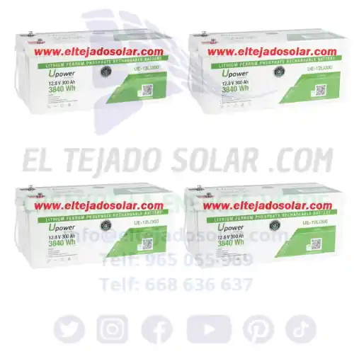 PACK 4 Baterías solar Litio 10240W UPOWER Monobloque De 12.8 V 300Ah UE-12Li300 3840 Wh