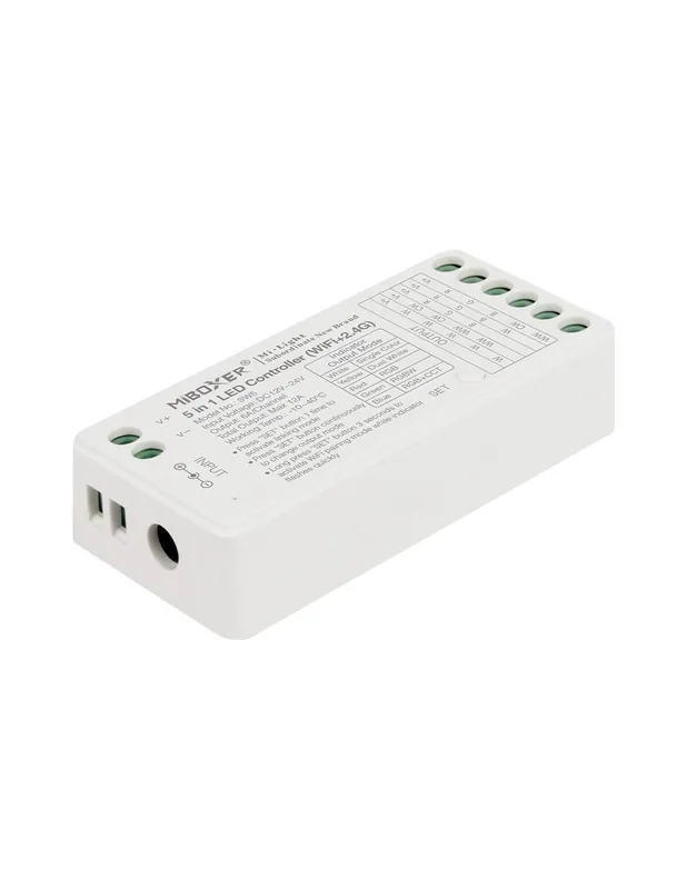 Ordena Ya Controlador RF y Wifi Miboxer SW5 12/24V 12A 5 en 1 para Tiras led Monocolor, CCT, RGB, RGBW, RGB+CCT