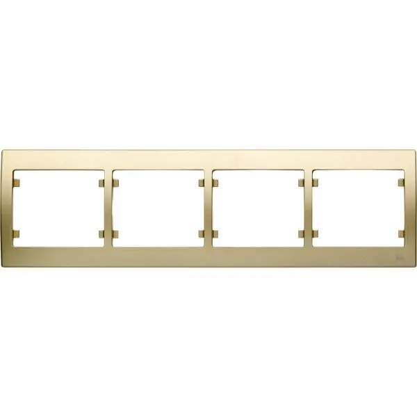 Marco 4 elementos horizontal color dorado odisea serie IRIS. Una serie de pequeño material que se adapta a las exigencias actuales en decoración e interiorismo. Líneas simples y elegantes. Al ver el resultado puede parecer que su creación ha sido sencilla, pero a veces, encontrar la simplicidad es lo más difícil. Bjc Iris consigue lo difícil. Una pieza nacida fruto del trabajo de investigación para cumplir con las nuevas tendencias. Ligereza por su tacto suave, por su agradable accionamiento y, por supuesto, por su diseño. Bjc Iris ofrece al usuario diferentes funciones para mejorar su calidad de vida. Reguladores de intensidad de luz, controladores de sonido, mecanismo de subida y bajada de persianas, detectores de presencia, receptores de mando a distancia.