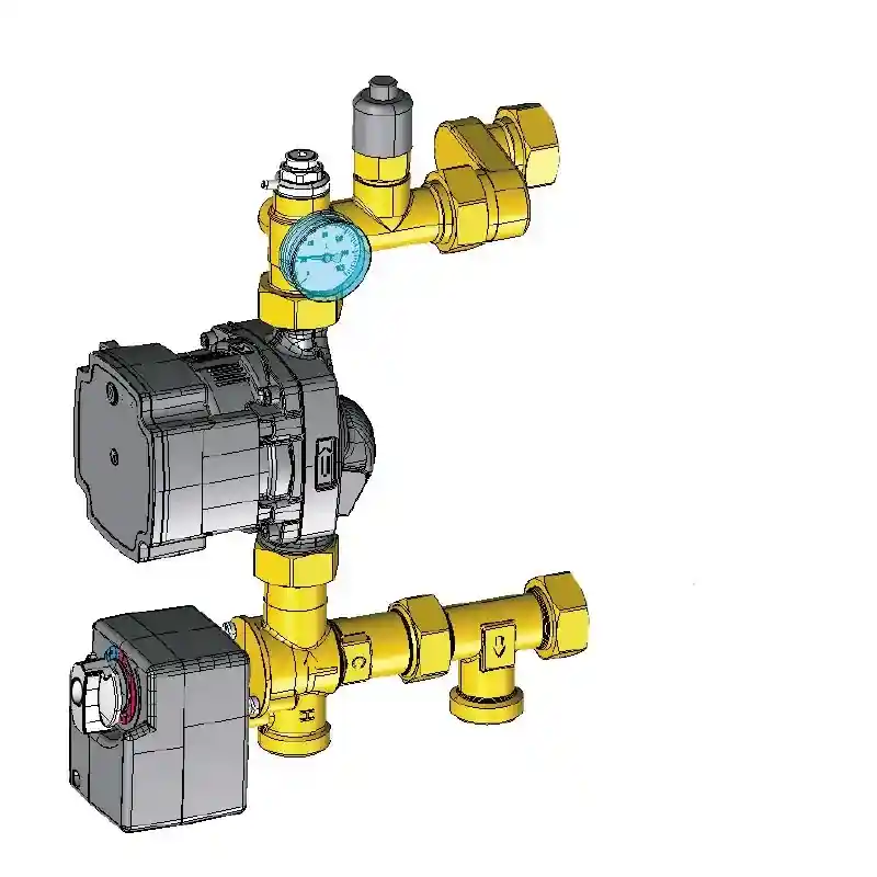 Equipado con una válvula mezcladora termostática de 3 vías y un servomotor incluido, este grupo de bombeo permite un control preciso de la temperatura, ajustándose a las necesidades del sistema de calefacción. Además, incluye una bomba FERCO FAPM15/8 Hybrid, reconocida por su alta eficiencia, ideal para aplicaciones de climatización y energía solar. Con una potencia de 65W y una altura manométrica de 8 mca, esta bomba garantiza un funcionamiento eficaz y confiable.