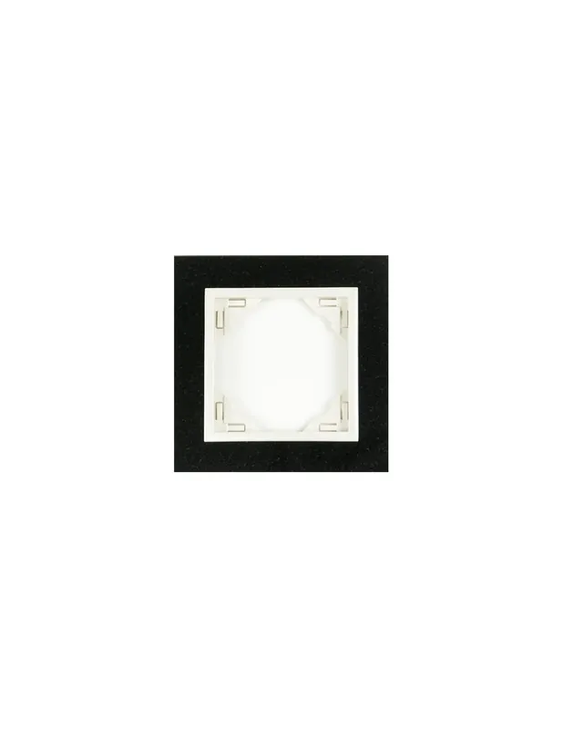 El marco se instala fácilmente en cajas de empotrar estándar. Su diseño permite una integración discreta en paredes de diferentes estilos decorativos, desde ambientes contemporáneos hasta espacios más tradicionales.