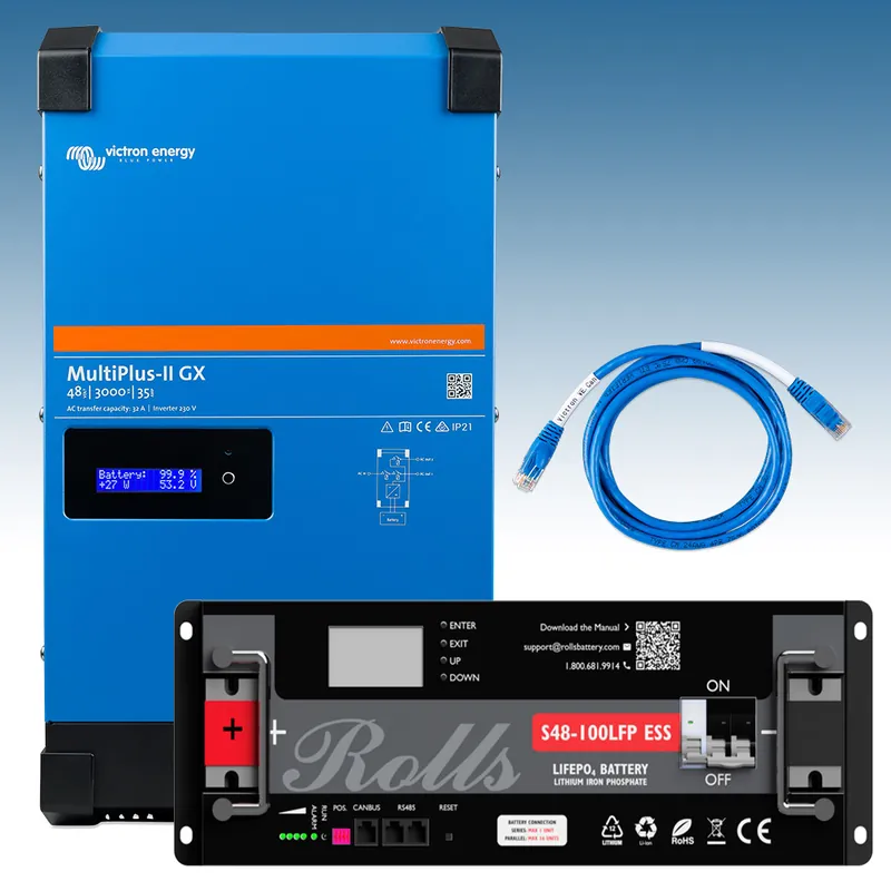 Pack de Inversor Cargador Victron Energy MultiPlus-II 48/5000/70-50 GX + Batería Rolls S48-100LFP ESS 5.12 kWh