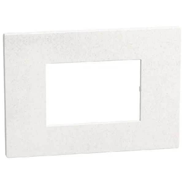 Placa embellecedora con acabado White Mica, de 3 módulos (formato rectangular). Instalar con soporte Bticino con tornillos ref.Y4703 (x1) en cajas de empotrar para tabique hueco ref.PB503N o para albañilería ref. 503E.