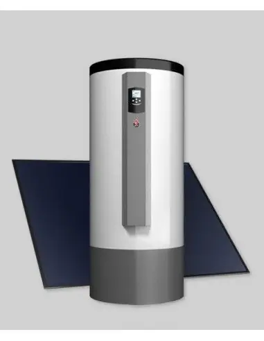 - Conjunto completo que incluye captador solar, interacumulador, grupo de impulsión y centralita de control
