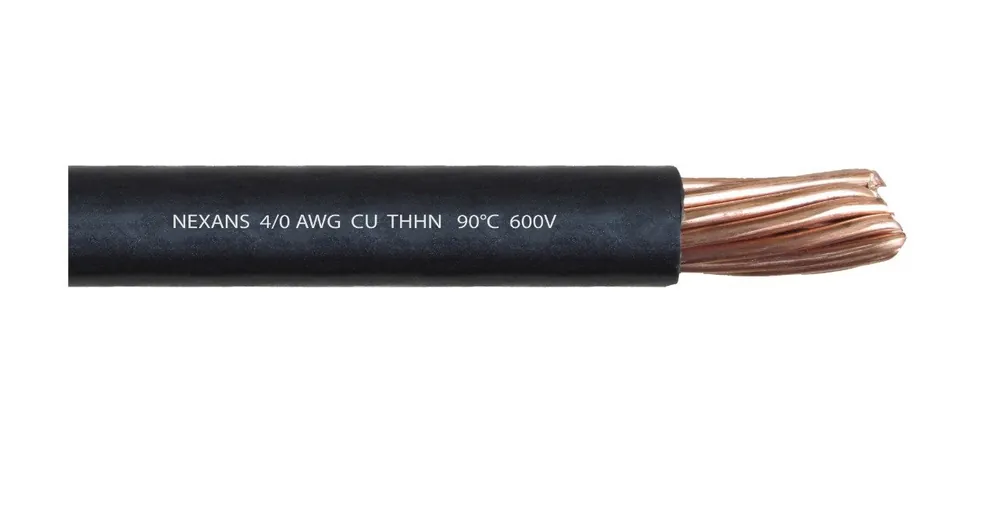 Cable 4/0 AWG aislado THHN/THWN-2 90°C 600V color negro.