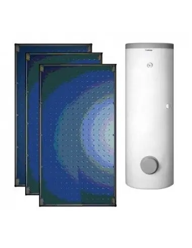 El sistema Junkers F3 / 400 / FKC-2, para cubierta plana y de posición vertical, está formado por 3 captadores solares de alto rendimiento modelo FKC-2S, accesorios de conexión FS 17-2, estructura de soporte FV 3-2 y depósito solar de 400 litros de capacidad (SK 400-5 ZB). Cada paquete soloar Top incluye, un juego de accesorios de conexión, estructura de soporte, ganchos de conexión para paquetes sobre cubierta inclinada, grupo de bombeo con controlador solar integrado (AGS 10 /TDS 100-2), vaso de expansión de 25 litros (SAG 25), válvula de seguridad de 6 bar (VS 6), purgador automático de aire (ELT 6) y accesorio de conexión al vaso de expansión (AAS 1). |