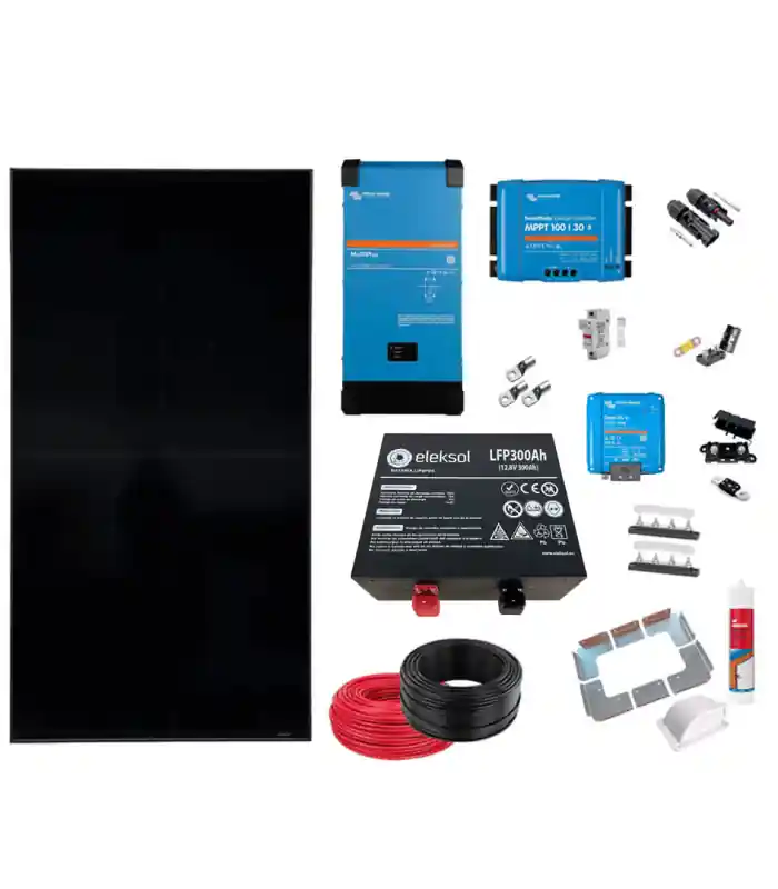 Kit solar camper 400W 12V con batería Eleksol litio 300Ah y Victron MultiPlus 2000VA