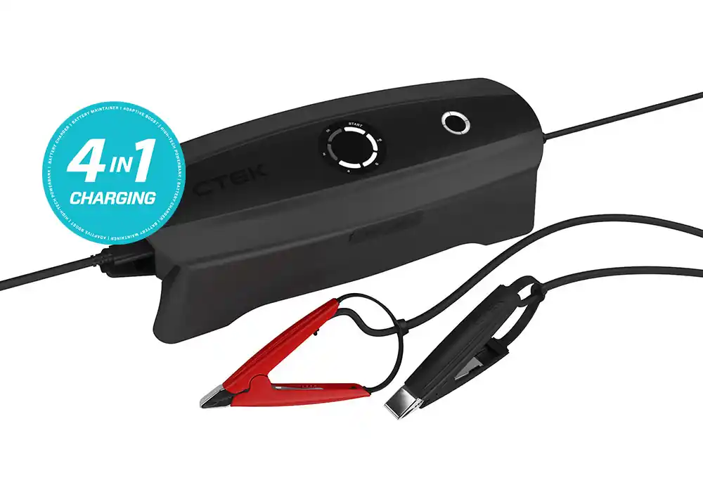 Se puede dejar conectado de forma segura a la red eléctrica, a la batería de servicio o al panel solar para una carga de mantenimiento inteligente