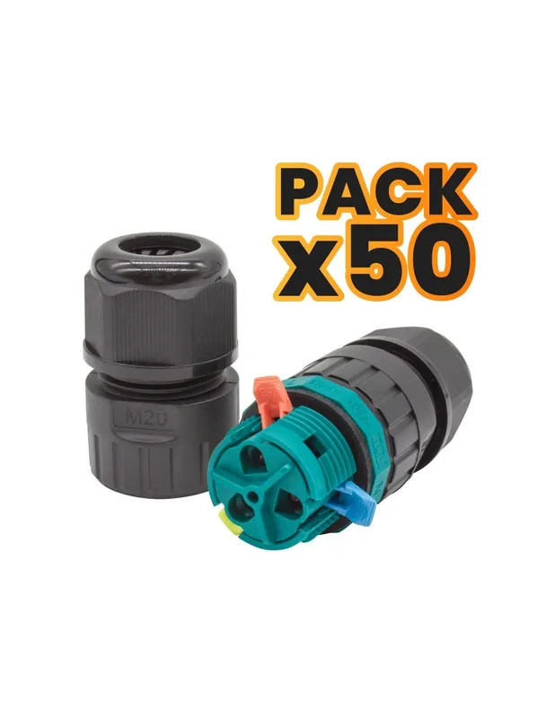 Pack X50 Conectores Estancos IP68 450V 2P+tt 0.5-2.5mm² Sin Tornillos