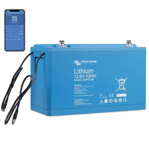 Batería VICTRON SMART Litio LIFEPO4 100Ah 12.8V 1280W – Inteligente: Batería de fosfato de hierro y litio de 12.8V 100Ah con tecnología inteligente.