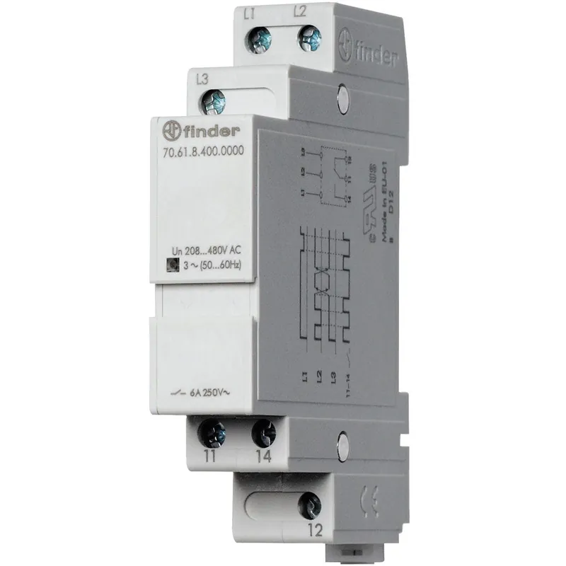 -Función: Detecta y protege contra fallos de fase y variaciones de voltaje en sistemas trifásicos, desconectando la carga para evitar daños