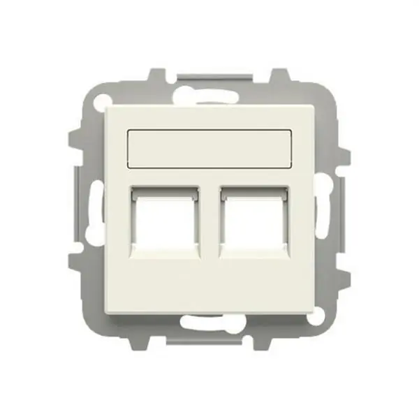 Tapa 2 conectores Serie de lujo con persiana blanco essence. Elegante en cada uno de sus lados, lineal, equilibrada, esbelta… La serie Sky Niessen le da un aire moderno a cada uno de sus espacios. Su diseño minimalista facilita la integración en proyectos de arquitectura contemporánea, con una altura mínima sobre la pared. La tecla grande queda completamente integrada en el marco y el detalle cromado aporta un toque de elegante distinción. Tiene una gran gama de colores y acabados nobles que permiten adaptarnos a cualquier tipo de estancia. Es una serie ecodiseñada, por lo que los requisitos de sostenibilidad quedan garantizados. La referencia 2CLA851820A5101 está relacionada con Programa de instalación de interruptores/enchufes, tratándose de un/una Inserto/cubierta para tecnología de comunicación. Sus características técnicas son: Número RAL (similar): 9010. Tipo de montaje: Elemento básico con placa de cubierta central. Anillo portador. Libre de halógenos. Conexiones aisladas. Tratamiento de superficie: Sin tratamiento. Uso: Para carcasa de conexión de datos. Con protección contra el polvo. Resistencia al impacto (IK): IK00. Altura del dispositivo: 102 mm. Profundidad del dispositivo: 245 mm. Material: Plástico. Anchura del dispositivo: 90.00 mm. Calidad del material: Termoplástico. Acabado de superficie: Brillante. Color: Blanco. Apto para el grado de protección (IP): IP20. Apto para el número de tomas/acoplamientos: 2. Dirección de salida: Recto. Campo de etiquetado: Con placa de indicación. Tipo de fijación: Montaje con tornillo. Método de montaje: Montado empotrado (escayola).