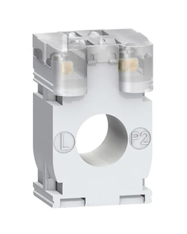El toroidal Schneider 250/5A es un toroidal cerrado que nos permite conocer la corriente que circula por el cable que pasa a través de él transmitiendo la información al vatímetro al que se conecta.