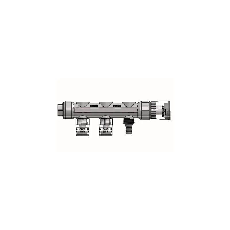 El Colector Recto 5 vías FERCO ¾»/20x16x16x16 es una solución versátil y eficiente para instalaciones de agua caliente sanitaria (ACS), calefacción, climatización y energía solar. Diseñado con el sistema de unión DUO Quick Push Fit, este colector garantiza un montaje rápido y sencillo, sin necesidad de herramientas, lo que supone un ahorro de hasta un 80% en tiempo de instalación.