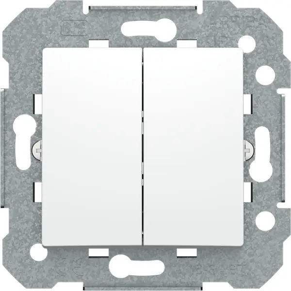 Mecanismo doble interruptor sin garras color blanco polar serie VIVA. Nuestro estilo de vida y aspiraciones están cambiando. BJC presenta la nueva colección bjc viva, pensada para gente joven, práctica, preocupada por el medio ambiente y en continua evolución. Una serie versátil por su diseño atemporal, basada en la simplicidad de líneas y formas y con la combinación de dos colores, en marco y tecla, donde el marco tiene toque de color diferenciador. El marco presenta cuatro acabados posibles: negro, blanco, gris y beige, y la tecla siempre en blanco. Combinaciones que proporcionan sobriedad y que facilitan su adaptación a los diferentes estilos de decoración actual. El estilizado diseño de la serie permite conseguir la integración total del mecanismo en la pared.