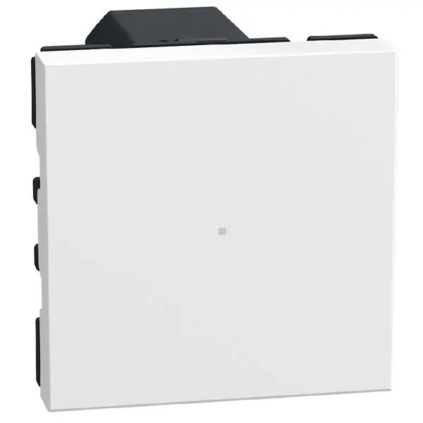El interruptor de iluminación conectado con opción regulación permite el control y regulación de cualquier tipo de lámpara regulable hasta 150 W. Con neutro. La opción de regulación se tiene que activar desde la aplicación Home+Control Legrand. Usa el mismo cableado (fase y vuelta) que un mecanismo tradicional. Está equipado con un LED azul para funciones de localización y estado de carga, configurable desde la app. Se puede controlar desde uno o varios comandos de iluminación inalámbricos. Requiere de la instalación del Starter Pack. Se debe completar con un soporte y una placa embellecedora de la serie Light Now.