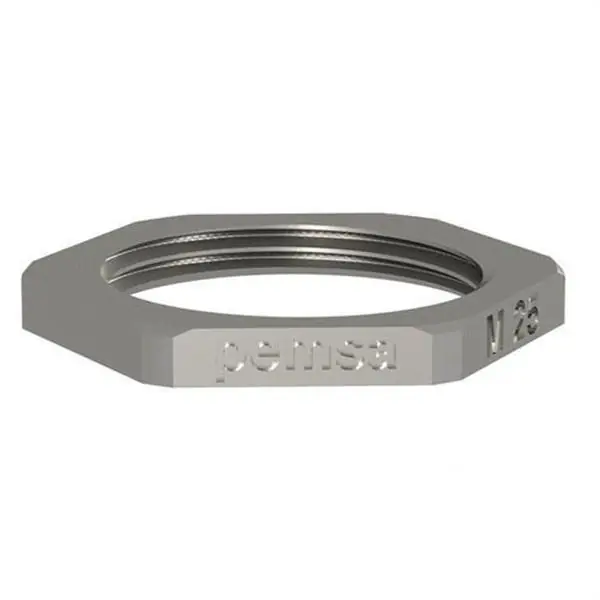 Tuerca metálica TCM para tubos sistema Pemsaflex®, PG 9 acabado niquelado.